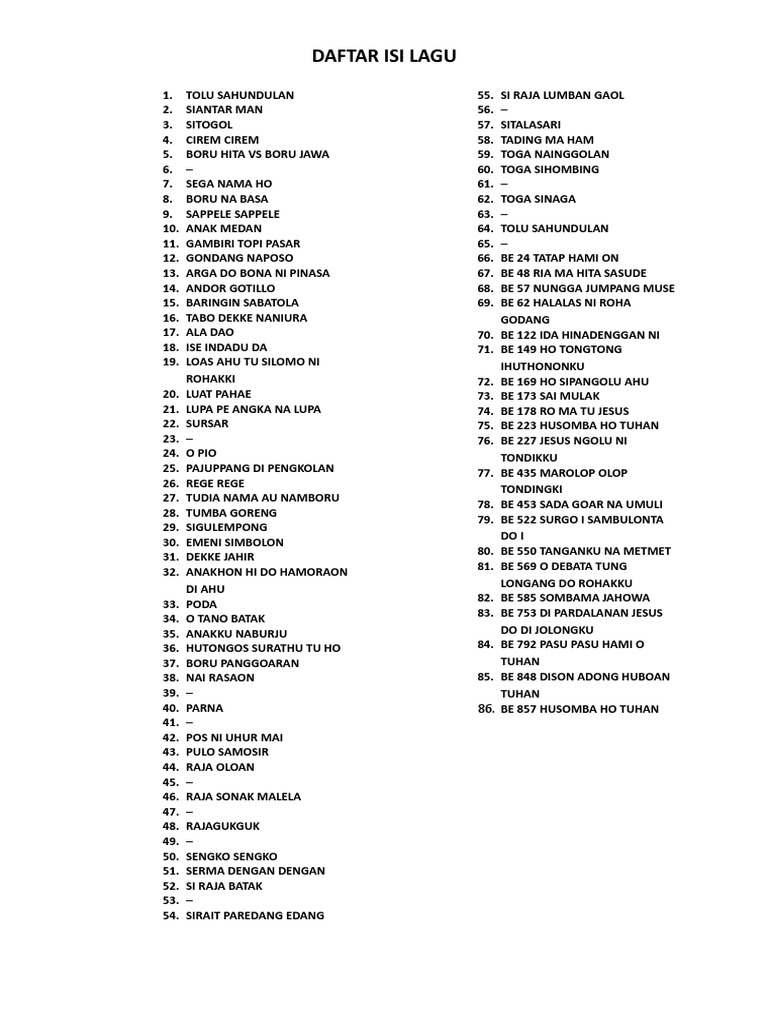 Be 550 Tanganku Na Metmet Hkbp Lagu Gereja Com Lagu Gereja Hkbp Buku Ende Not Angka from hkbp.lagu-gereja.com Tangiang ni dainangi naparorot tondikki manang didia pe au manang didia pe au tottongdo diramoti. Nang sipata salah au tartuttuk au di langkahi diboan ho di tagiangmu diboan ho di tagiangmu. Tangiang ni dainang i na parorot tondikki nang di dia pe au nang di dia pe au tongtong do diramoti. Download mp3 tangiang ni dainang gratis, ada 20 daftar lagu tangiang ni dainang yang bisa anda download. Untuk melihat detail lagu tangiang dainang klik salah satu judul yang cocok, kemudian untuk link download tangiang dainang ada di. Би 2 лайки аккорды для гитары. Not angka lagu batak tangiang ni dainang koleksi kumpulan. Manang di dia pe au.
