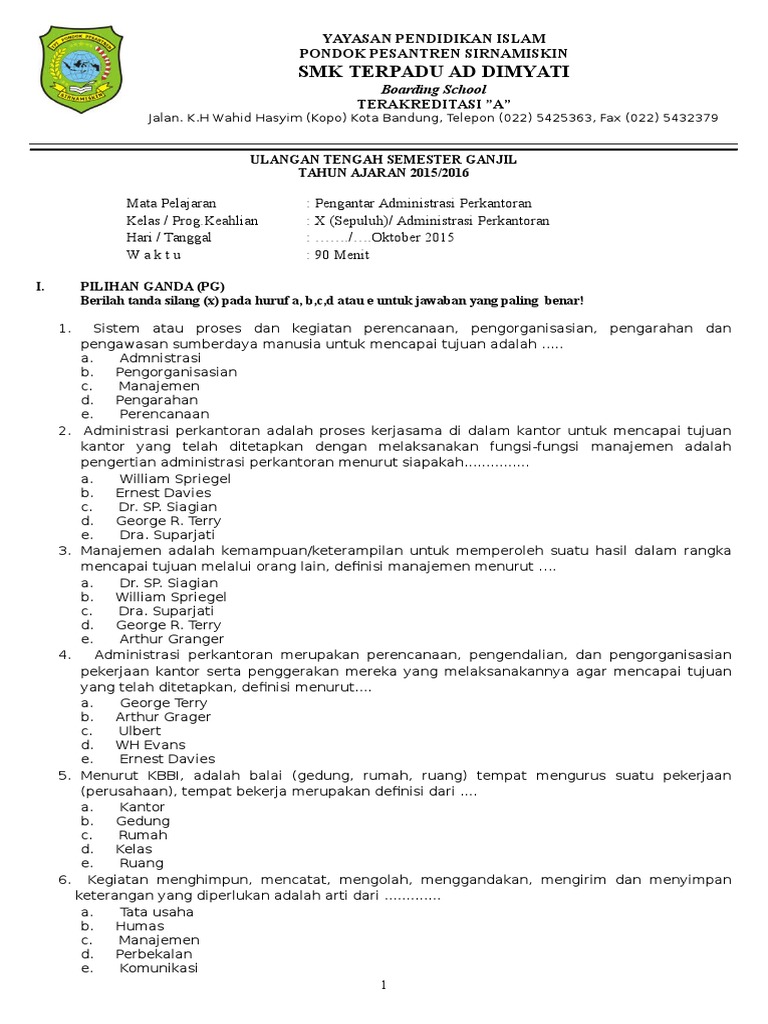 Soal Ulangan Administrasi Umum - Soal Pat Administrasi Umum Kelas 10 Tahun 2020 Pendidikan : Check spelling or type a new query.. We did not find results for: Check spelling or type a new query. Maybe you would like to learn more about one of these?